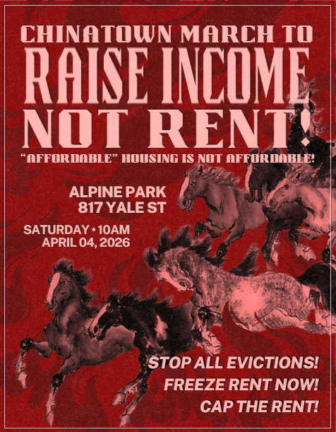 Rent has far outpaced stagnant benefits and income. Most Chinatown tenants are one rent increase away from being homeless. This is unacceptable when trillions are spent for wars, ICE and police, while working class communities and disabled seniors are literally starving.